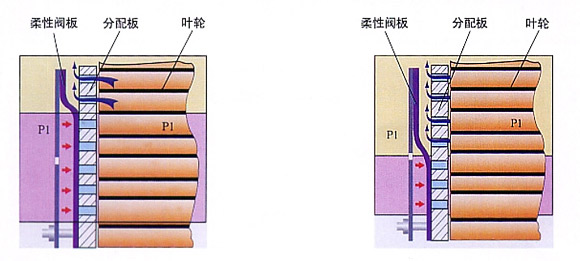 2BE系列真空泵的排气系统采用独特的聚四氟乙烯阀板结构,阀板覆盖在圆盘外侧的排气孔上,并由不锈钢挡板定位。此阀板随入口压力的变化而变化,其弯曲程度使得泵送介质在达到入口压力时即可排出泵外。该结构避免了真空系统中的过压缩,所以自动调整排气面降低能量消耗,从而达到优佳的运行效率。