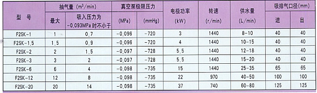 F2SK系列耐腐蚀水环式真空泵及压缩机组,是采用酚醛玻璃纤维增强塑料,经高温、高压模具化成型加工制造。具有耐腐蚀范围广、真空度高、在高真空区间抽速大、体积小、重量轻、环保节水、便于维护、运行平稳等特点。