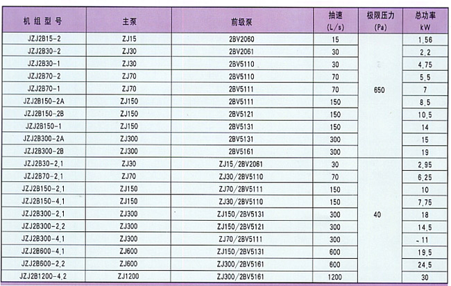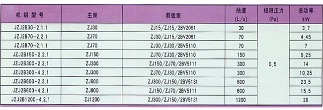 3.表中的真空机组型号是本公司常规产品,也可根据用户要求设计其它型号规格的产品。
